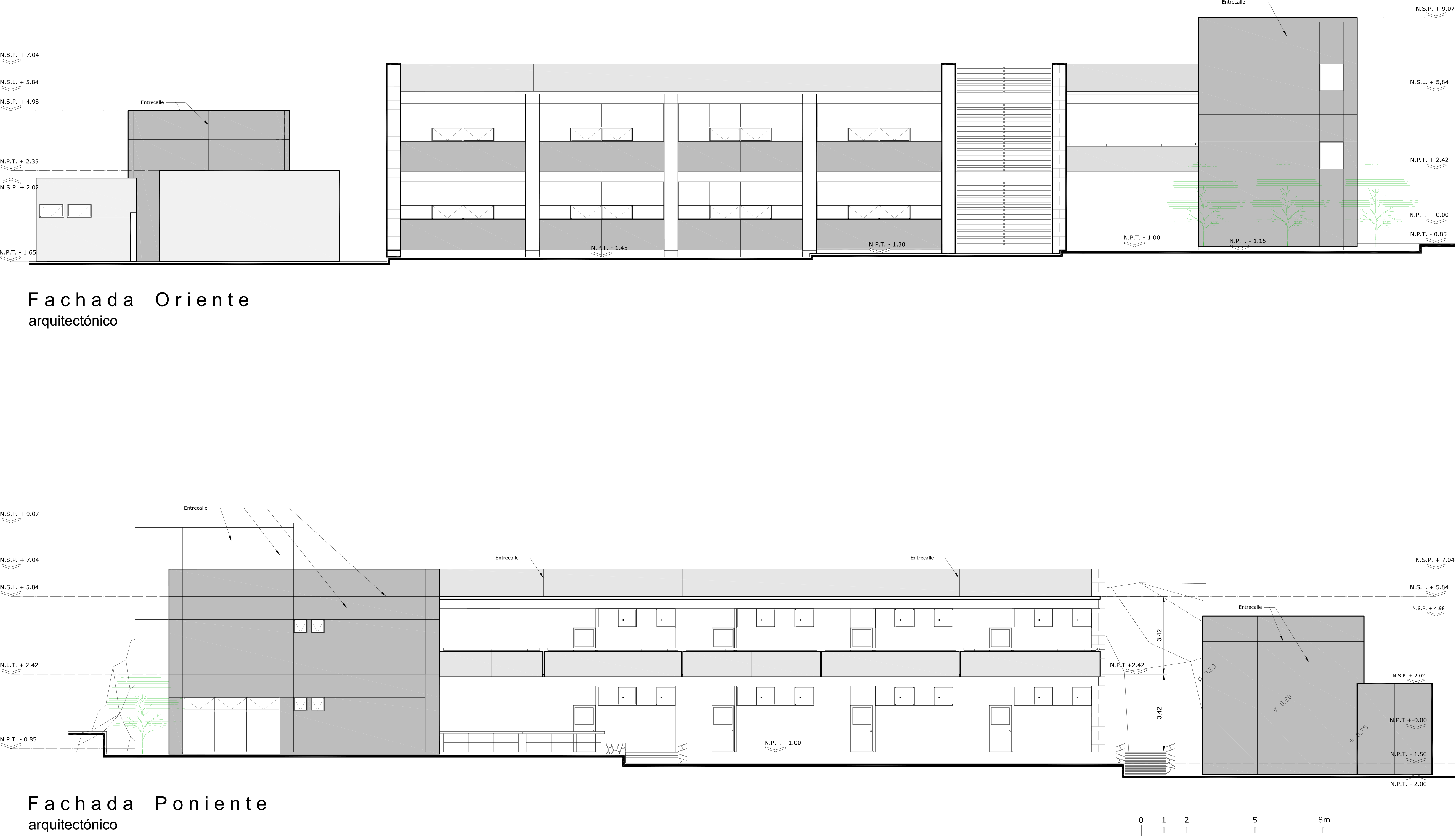 En este proyecto todas las aulas, talleres, baños y escaleras cuentan con iluminación y ventilación natural. En la administración sucede lo mismo con excepción de un baño interior que llevará extracción.